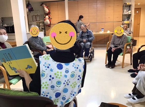 前回の読み聞かせレク同様、みんなで輪になって聞きました。